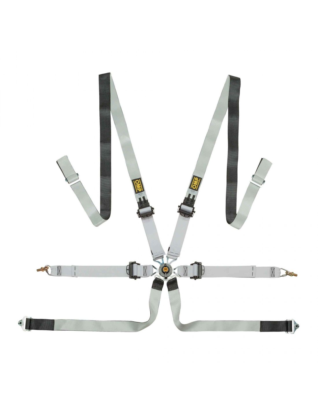Arnés de competición de la marca OMP, modelo 0102 HSL con sistema Pull Down. De 6 puntos de fijación. Arnés de seguridad ultraligero y cómodo para turismos. Fabricado en Dyneema, la fibra más resistente del mundo. Ajustadores ultraligeros de aluminio forjado, hebilla en ergal mecanizada a partir de sólidos y magnesio. Homologado para fijación directa a las barras antivuelco. Con homologación FIA 8853-2016.