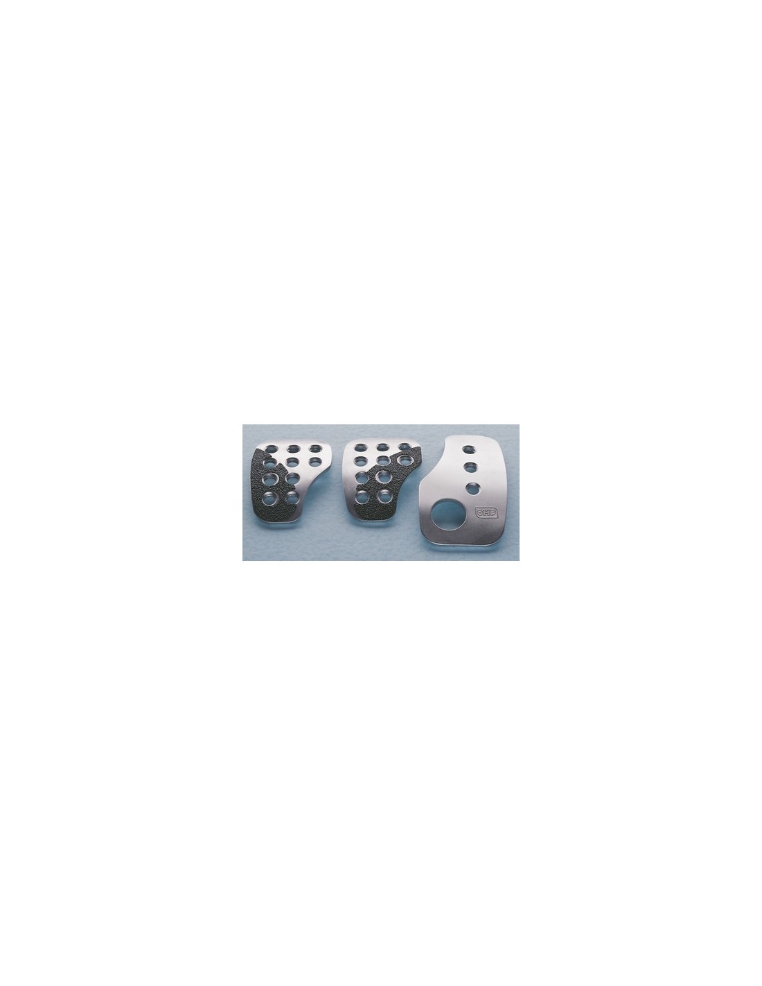 Juego de 3 cubrepedales de la marca OMP. De aluminio anodizado con insertos antideslizantes. Pedal del freno: 60x80mm. Pedal del acelerador: 60x105mm. Con tornillos de montaje.