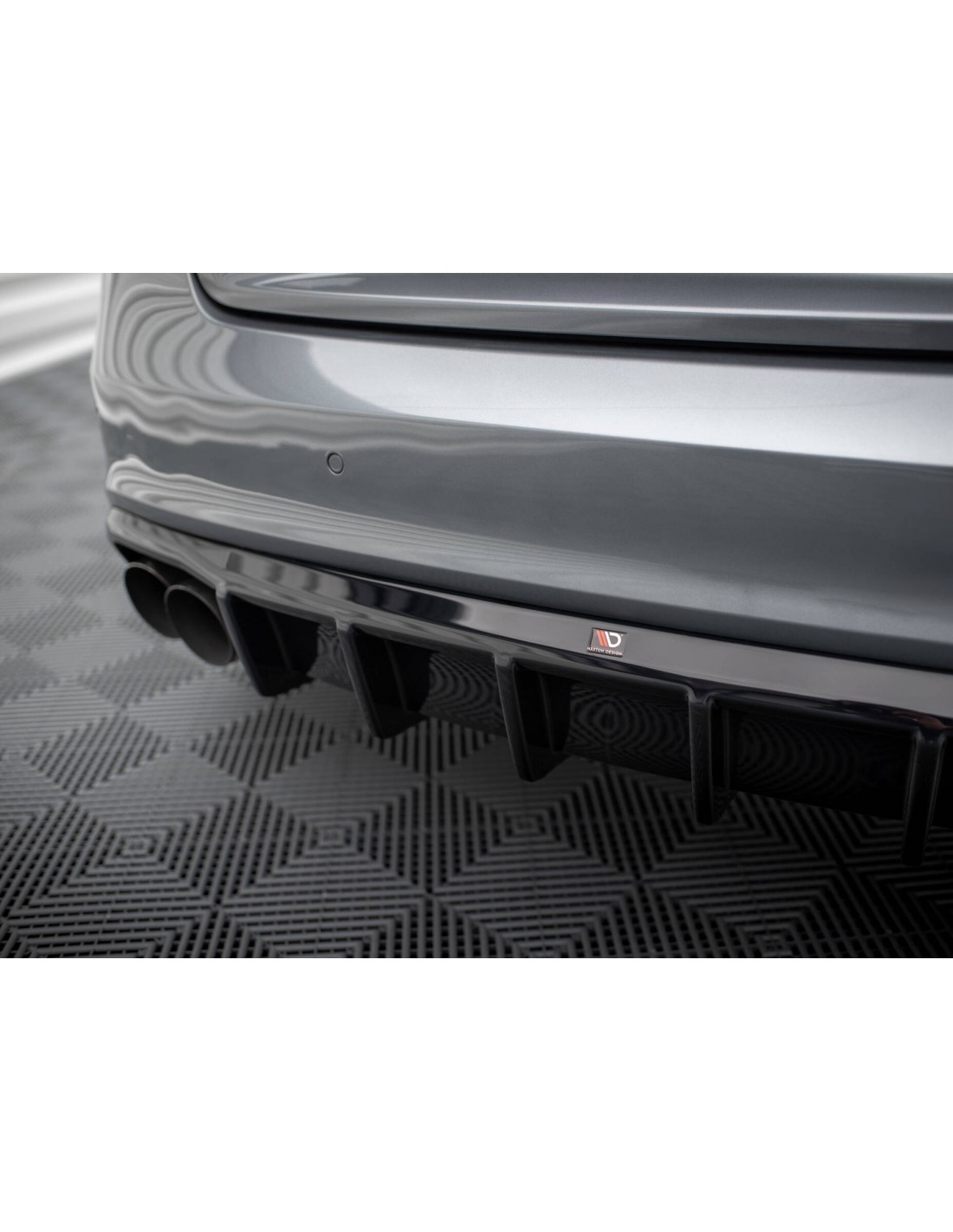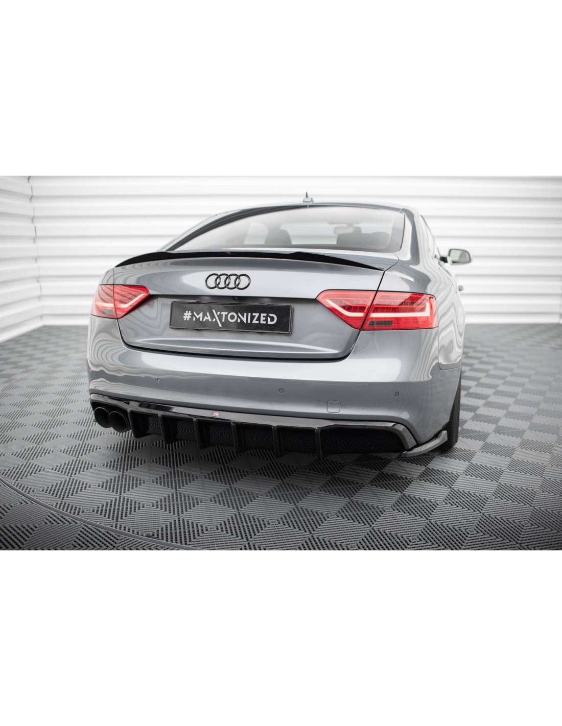 Difusor trasero de la marca Maxton Design. Para el Audi A5 8T Coupé/Sportback. Para modelos S-Line. Para modelos Facelift.. Con una salida doble por un lado.