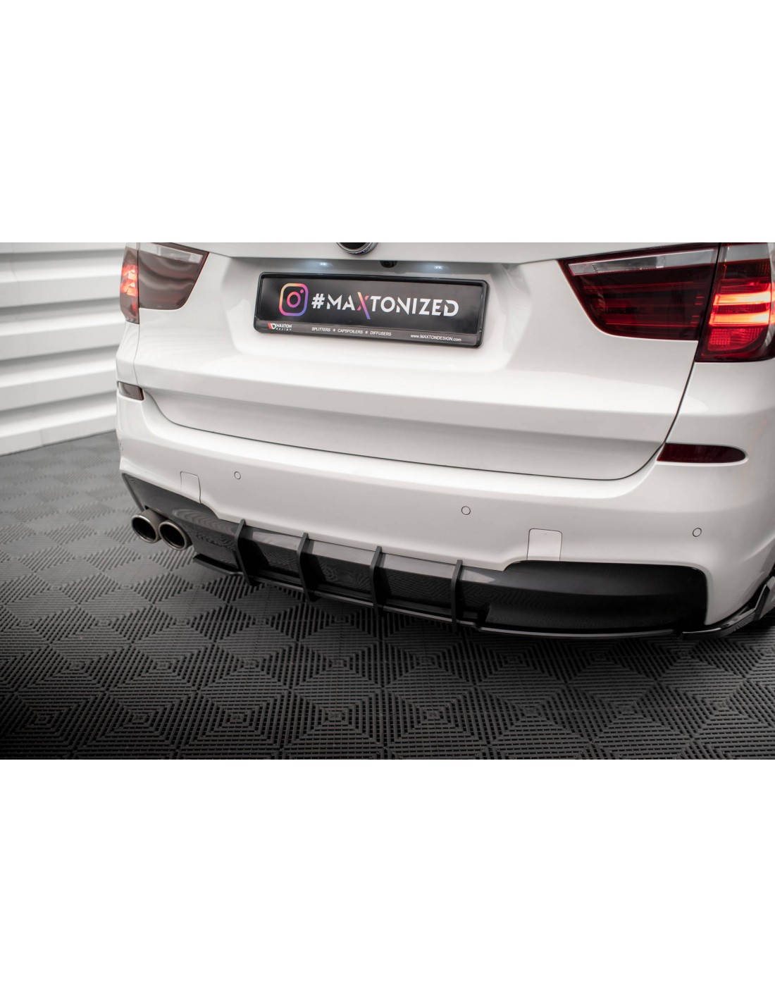 Difusor trasero, modelo Street Pro, de la marca Maxton Design. Para el BMW X3 F25. Para modelos con pack M.