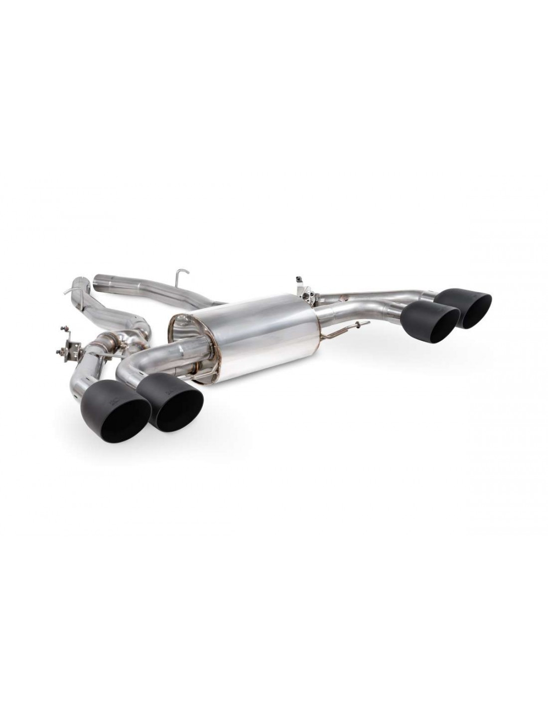 Sistema de escape de la marca Scorpion Exhausts. Para el BMW X3M F97 Restyling. Con colas de escape modelo Daytona negras.