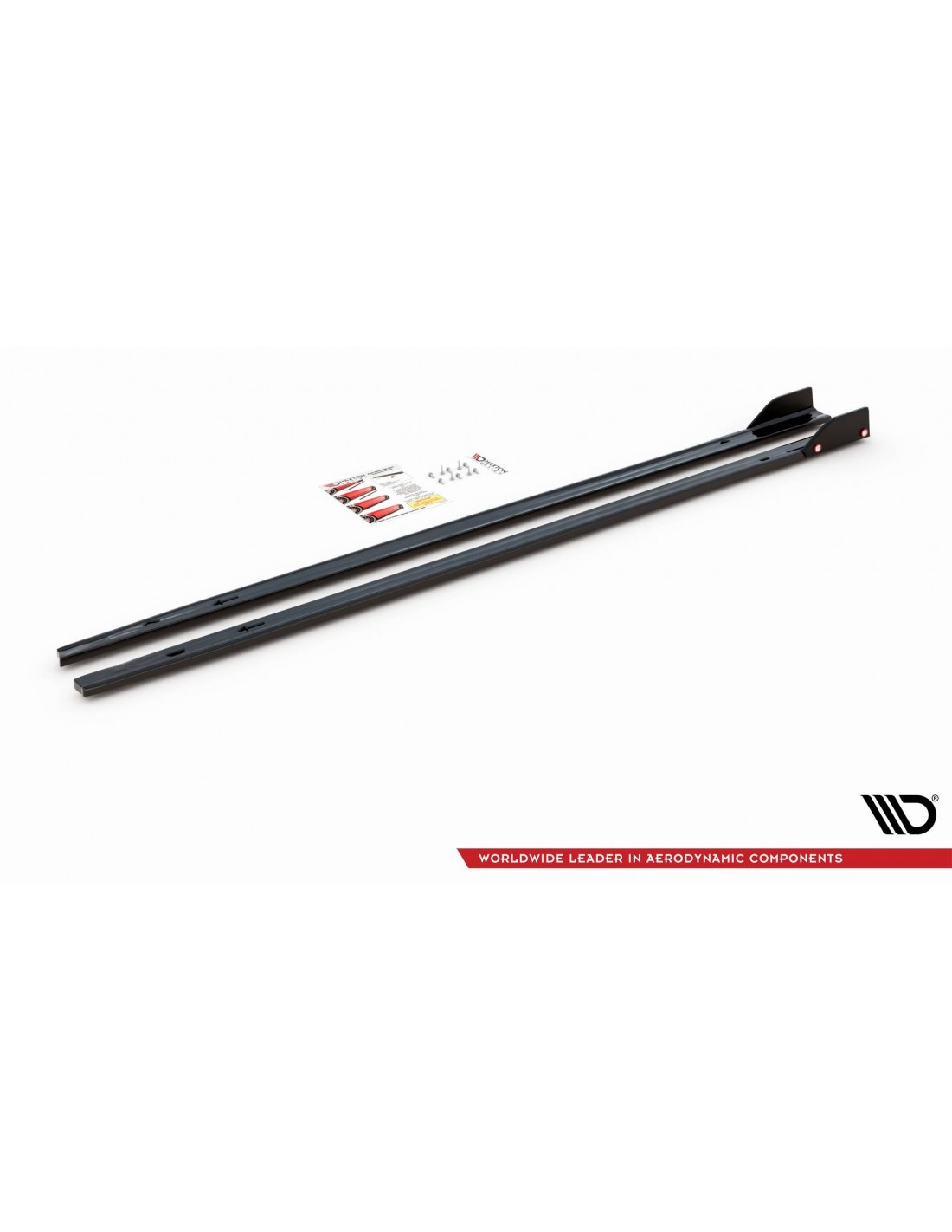 Juego de faldones laterales, versión 2, de la marca Maxton Design. Para el Volkswagen Golf VIII GTI (Con flaps). Con acabado negro brillante. Para otros acabados consultar con nuestros asesores.