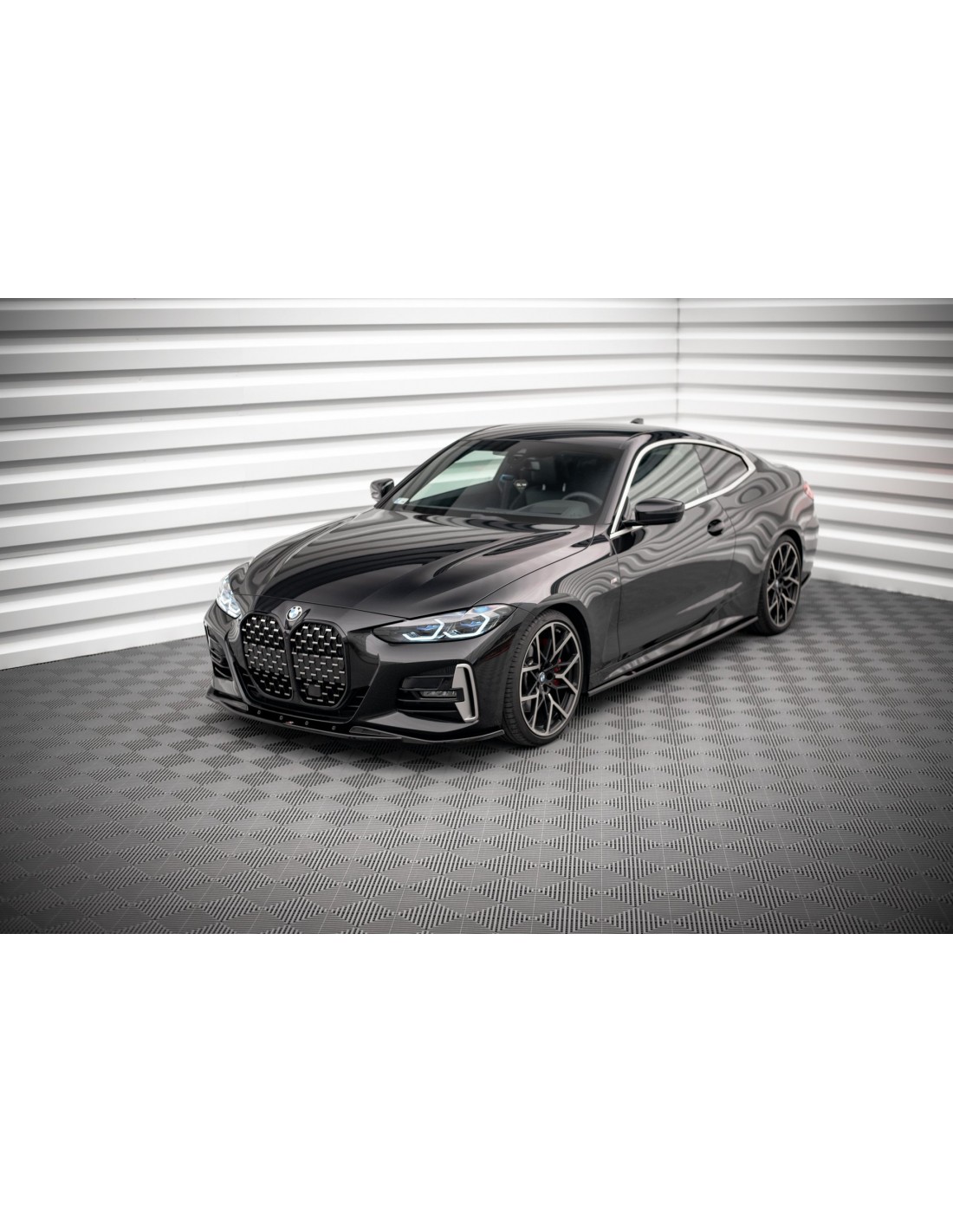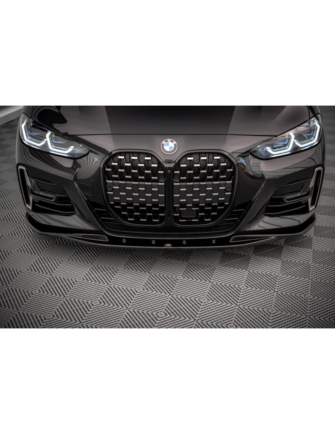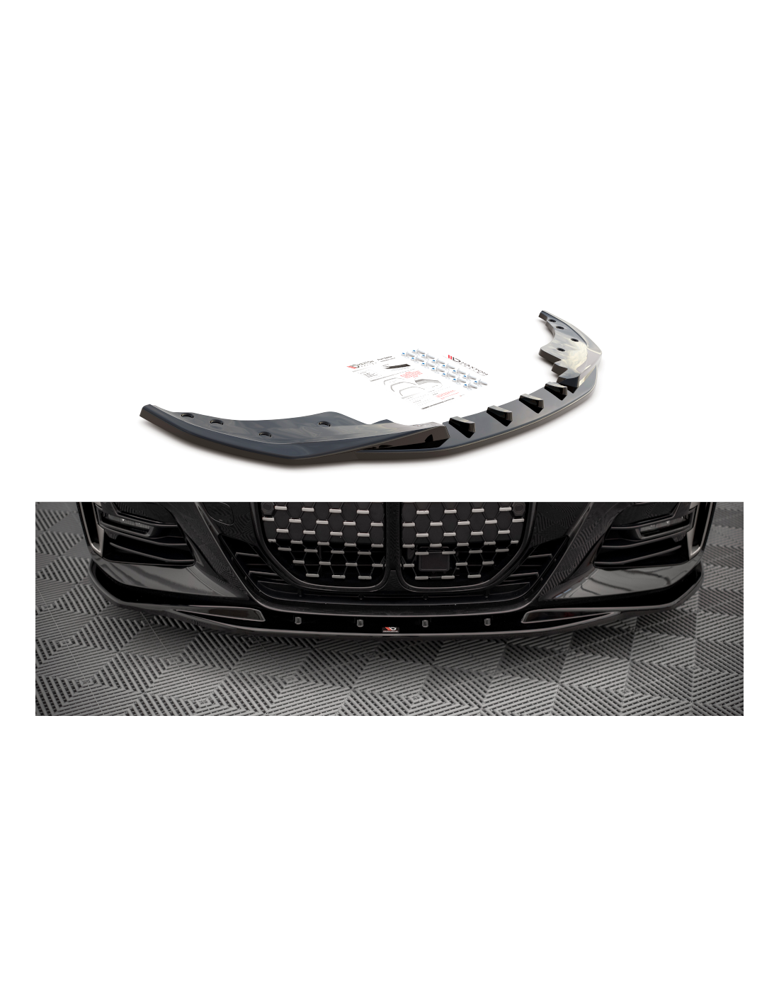 Lip delantero, versión 1, de la marca Maxton Design. Para el BMW Serie 4 G22. Para modelos con pack M. Con acabado negro brillante. Para otros acabados consultar con nuestros asesores.