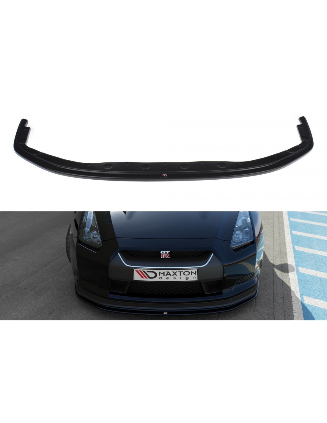 Lip delantero, versión 2, de la marca Maxton Design. Para el Nissan GT-R R35. Con acabado negro brillante. Para otros acabados consultar con nuestros asesores.
