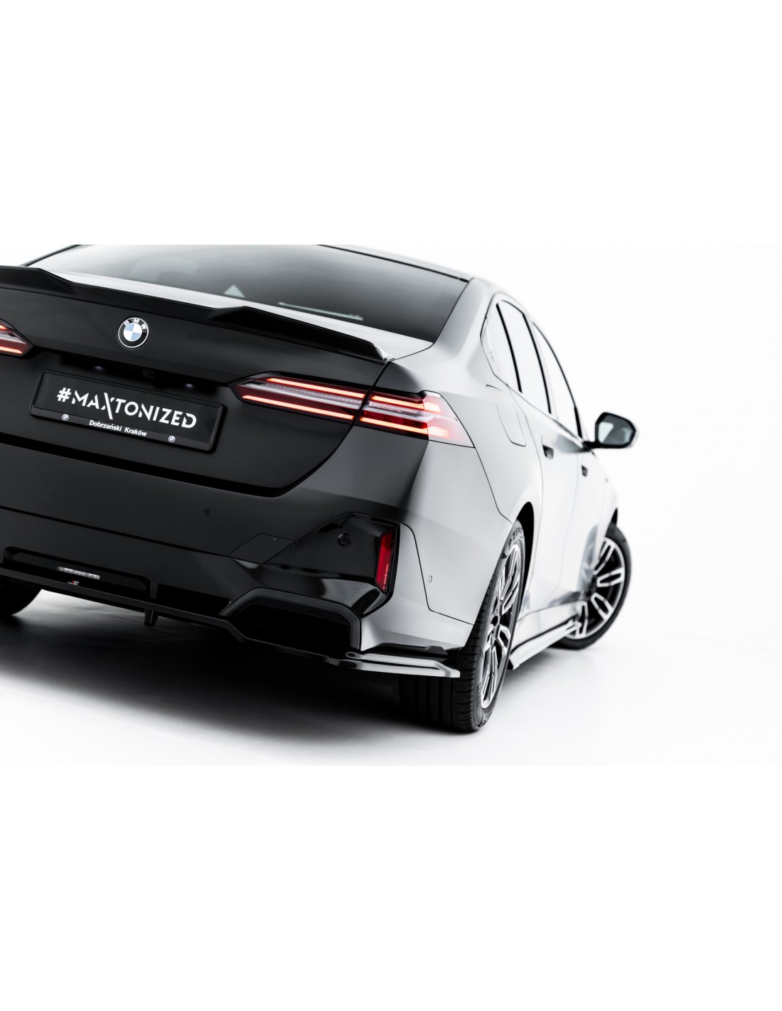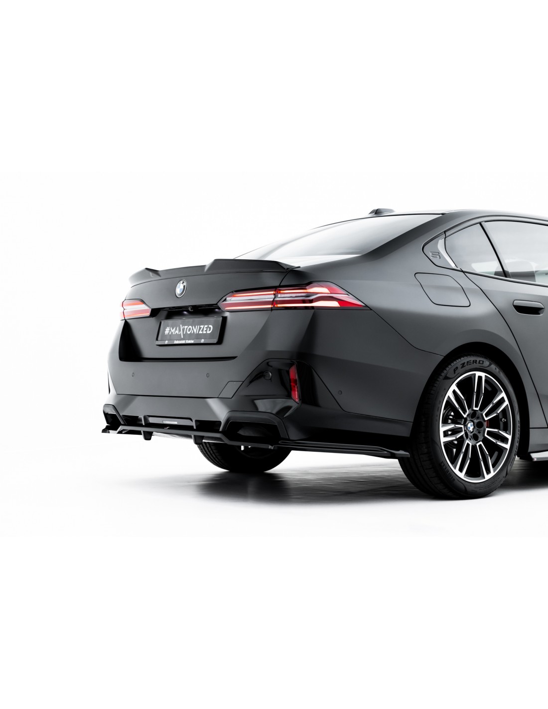 Lip trasero, versión 1, de la marca Maxton Design. Para el BMW Serie 5 G60. Para modelos con pack M. Lip con barras verticales.