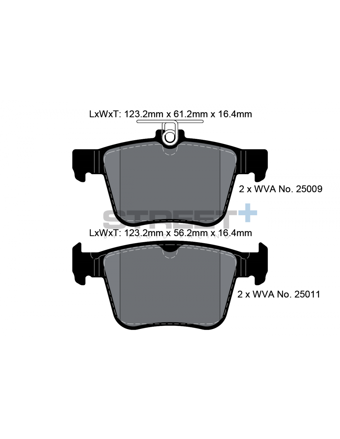 Juego de 4 pastillas de freno de la marca Pagid Racing, en compuesto Street+. Para el Audi A3 8V. Para todos los modelos excepto S3. Para el eje trasero. Para modelos con disco de 310mm.