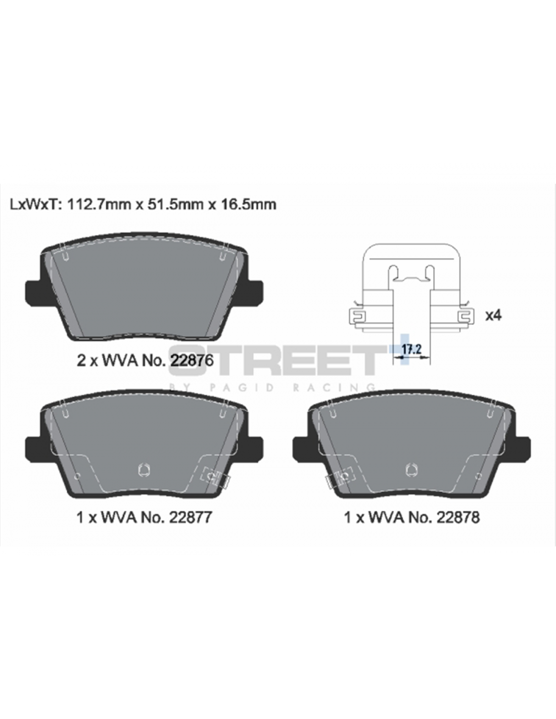 Juego de 4 pastillas de freno de la marca Pagid Racing, en compuesto Street+. Para el Hyundai i30N. Para el eje trasero.
